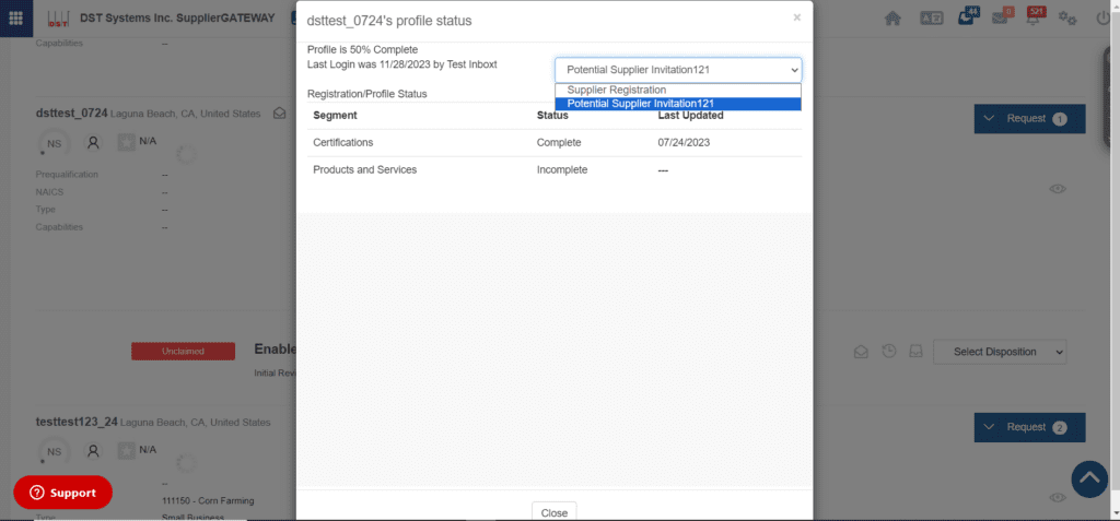Registration Monitoring Progress: For accurate tracking of supplier registration progress at a glance.